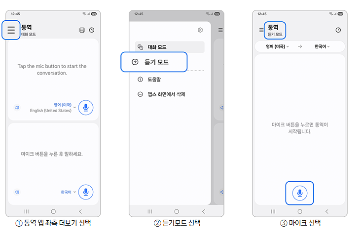 갤럭시에서 활용할 수 있는 통역 기능은 크게 세 가지입니다.