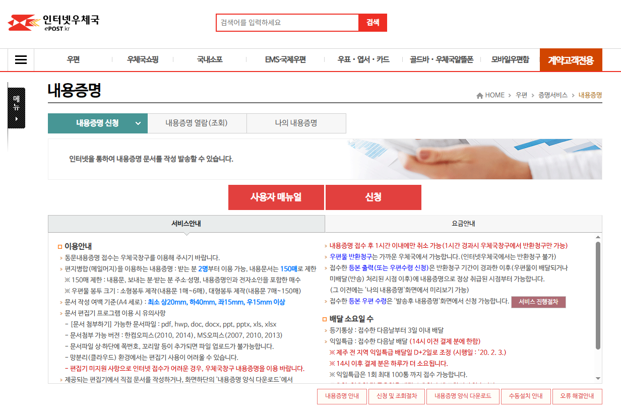 인터넷우체국 내용증명 보내는방법