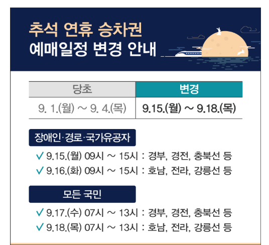 코레일 역시 특별 예매 기간을 운영합니다. 올해는 기존 예매 기간이 변경되었습니다.